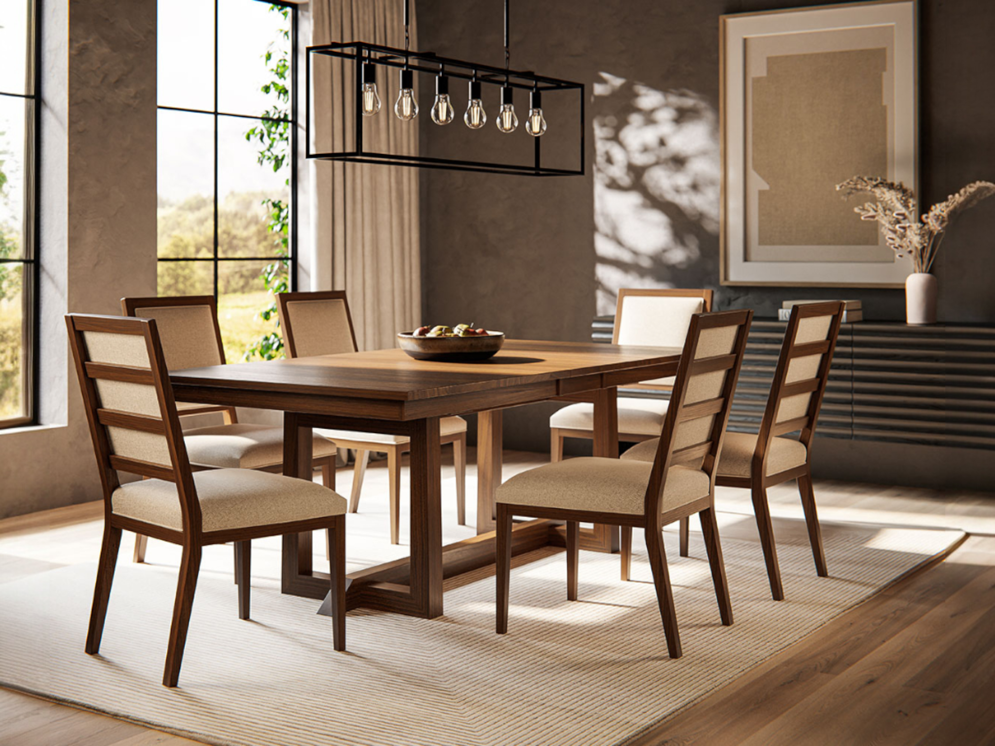The August Dining Table is simple yet profound in detail and versatility. Hand-Crafted by Artisans in Indiana. Solid Hardwood Through & Through. Built to Last a Lifetime.